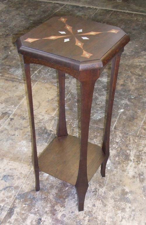 天板のアルミや真鍮の象嵌とスマートな脚が特徴の花台です。
