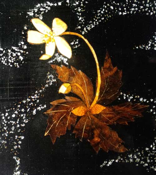 工房名の二輪草をやっと象嵌で表してみました。地の部分をカシュー黒にしてみました。なかなか思うような雰囲気にはなりません。